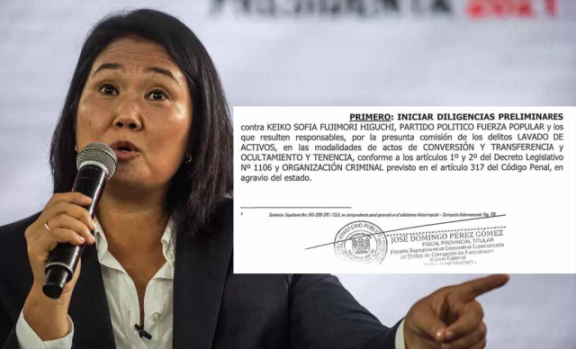 ERP. El Ministerio Público dispuso que se inicien investigaciones preliminares contra Keiko Fujimori, Fuerza Popular y quienes resulten responsables por la presunta comisión del delito de lavado de activos. Ello, por el caso ‘vladiaudios’.