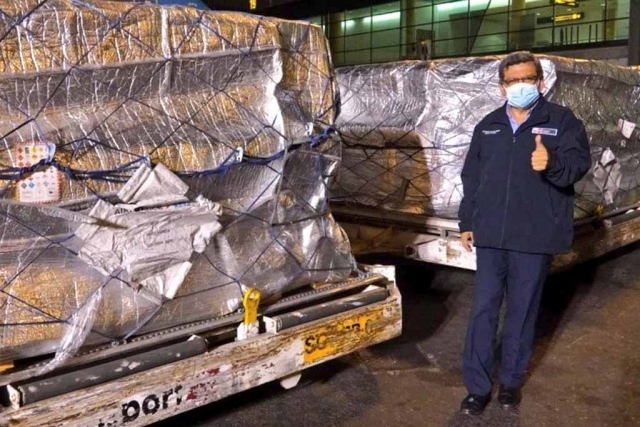 ERP. Por segundo día consecutivo, el Perú recibió un lote de vacunas contra la COVID-19. En esta oportunidad arribaron al Aeropuerto Internacional Jorge Chávez 662.220 dosis del laboratorio Pfizer. El titular del Ministerio de Salud (Minsa), Hernando Cevallos, se apersonó para supervisar el cargamento que será distribuido en todas las regiones del país a fin de que más ciudadanos se protejan contra la enfermedad.