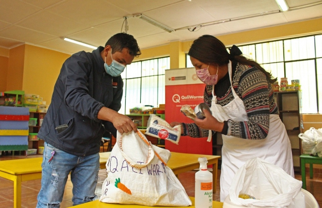 En el contexto de la emergencia sanitaria nacional por la COVID-19, los comestibles son repartidos, de manera directa, por los Comités de Alimentación Escolar (CAE) a las madres y padres de familia para que estos los preparen en sus hogares y sean consumidos por los escolares. Esto como acompañamiento a sus clases no presenciales de la estrategia Aprendo en Casa.
