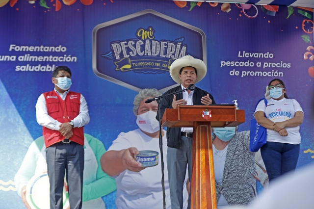 El jefe del Estado quien estuvo acompañado del ministro de la Producción Yvan Quispe, sostuvo que el Perú es un país rico, pero también preocupado por la salud, la pandemia y la alimentación, mensaje que llevó en su reciente viaje internacional ante la OEA, ONU, y otros organismos internacionales. Mejor alimentación Según remarcó, el gobierno llevará pescado a todos los rincones del país y las familias para revalorar los recursos pesqueros, teniendo en cuenta las riquezas del mar peruano y el cuidado de las especies.