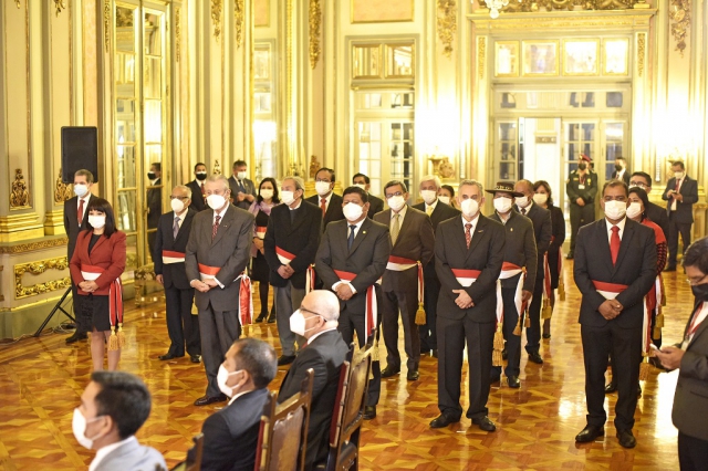ERP. El último 6 de octubre se procedió a tomar juramento de los ministros que lo preside la abogada Mirtha Esther Vásquez Chuquilín y que reemplazó a Guido Bellido Ugarte. El acto formal, se cumplió como siempre en Palacio de Gobierno que igualmente es la sede del Ejecutivo; algunos lectores se percataron de la diferencia en la frase previa y respuesta de los juramentados.