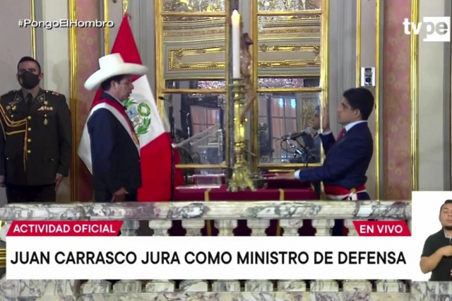El presidente de la República, Pedro Castillo Terrones, fue quien tomó juramento al nuevo ministro quién reemplaza en el cargo a Walter Ayala, quien tuvo una performance adversa y fue interpelado por el Congreso de la República; sin embargo, para evitar el cese por parte del legislativo, se vio obligado a presentar su renuncia irrevocable al cargo.