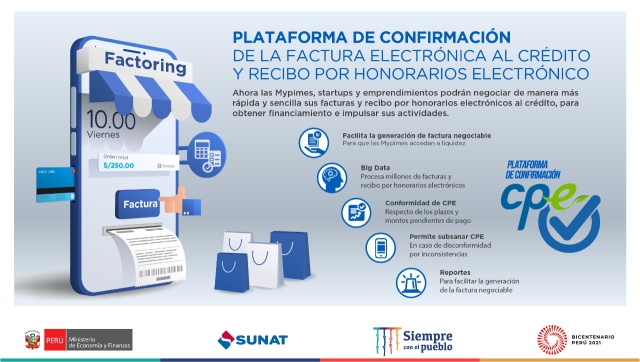 ERP. El factoring, un instrumento clave para que las micro, pequeñas y medianas empresas (MiPymes) obtengan financiamiento oportuno y apalanquen sus negocios, ingresó a su etapa de masificación, al generarse las primeras facturas electrónicas negociables, confirmadas mediante la plataforma implementada por la Superintendencia Nacional de Aduanas y de Administración Tributaria (SUNAT).