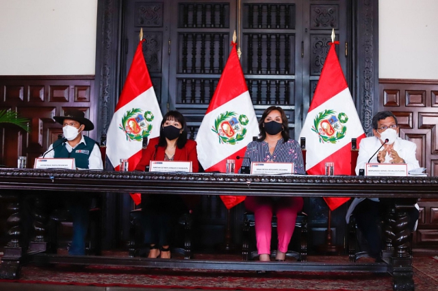 ERP. La premier de la República Mirtha Vásquez, y ministros, informaron de los acuerdos del Consejo de Ministros, para contener el avance de la tercera ola y otras acciones que realiza el Ejecutivo a favor de la población en general. Estuvieron presentes el ministro de Salud Hernando Cevallos Flores quien precisó las nuevas regulaciones, Dina Boluarte, del Midis, quien dio cuenta de los programas sociales y su ejecución.