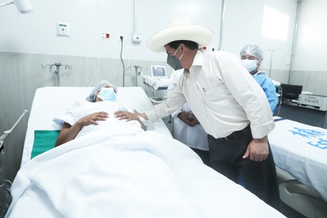 El presidente Castillo destacó que la población asegurada de Lima Norte y el Callao podrá contar con servicios de salud en mejores condiciones, con el equipamiento, las instalaciones y el personal calificado que les ofrece el moderno nosocomio inaugurado, el cual se ubica en San Martín de Porres y cuenta con 112 camas distribuidas en ocho módulos de hospitalización, seis de ellos destinados a pacientes leves de la COVID-19 y los otros dos al servicio de pacientes críticos.
