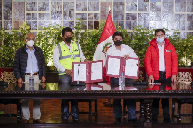 ERP. El Poder Ejecutivo, liderado por el presidente Pedro Castillo, suscribió hoy un acuerdo con los principales gremios de transportistas de carga del país el cual permitirá que se levante la medida de protesta a nivel nacional. Al respecto el mandatario saludo al acuerdo alcanzado y recordó a los trabajadores del sector transporte que el dialogo es la mejor vía para lograr soluciones.