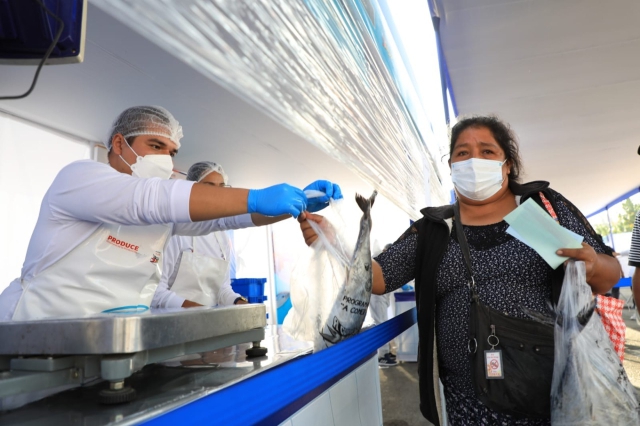 Hoy se vendieron 5.8 toneladas de pescado a precios económicos a la población de Puente Piedra. Esta campaña “Semana de la Lucha Contra la Anemia” se extenderá a otros distritos y departamentos del país.
