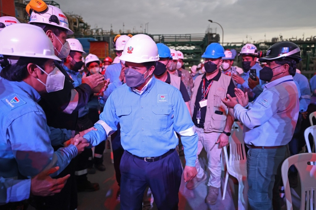Hoy, el gobierno del pueblo ha decidido recuperar y reimpulsar el petróleo para todos los peruanos, afirmó el presidente de la República, Pedro Castillo, al liderar esta noche el comienzo de las pruebas para el arranque gradual y progresivo de la nueva Refinería de Talara, en la región Piura.