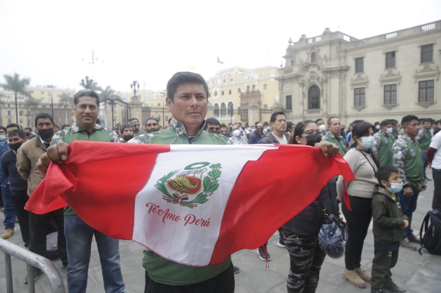 “Evaluaremos adecuar el reglamento para que se les reconozca como defensores de la democracia, en el marco de la Ley N° 31291”, sostuvo ante centenares de integrantes de la Confederación de Licenciados de las Fuerzas Armadas que llegaron a Palacio de Gobierno de diferentes regiones del país.