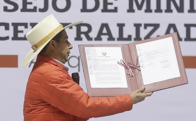 ERP.. El presidente de la República, Pedro Castillo Terrones firmó hoy un Decreto Supremo que autoriza la transferencia de más de s/59 millones a los gobiernos regionales para pagar el bono por escolaridad a profesores y auxiliares de educación contratados bajo la Ley N° 29944, Ley de Reforma Magisterial.