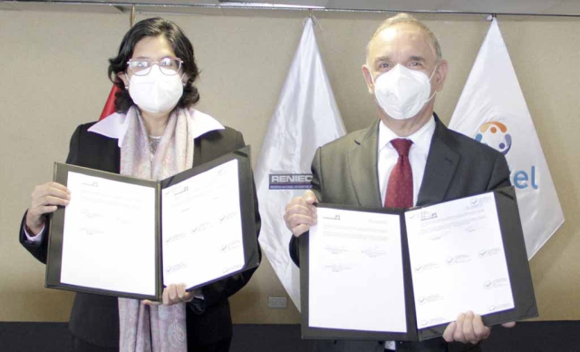 La firma del convenio se llevó a cabo con la presencia de la jefa nacional del RENIEC, Carmen Velarde Koechlin, y del presidente ejecutivo del OSIPTEL, Rafael Muente Schwarz.
