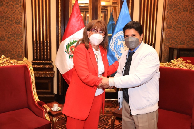 ERP. El presidente de la República, Pedro Castillo Terrones, pidió hoy a la secretaria general de la Conferencia de las Naciones Unidas sobre Comercio y Desarrollo (UNCTAD), Rebeca Grynspan, apoyar al Perú en el fortalecimiento del sector agrario y a contrarrestar los efectos de la crisis alimentaria debido al contexto mundial derivado de la pandemia y la guerra entre Rusia y Ucrania.