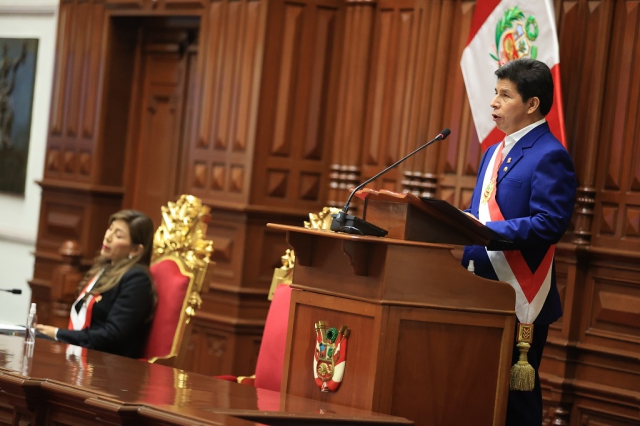 "Se ha presentado el proyecto de ley N° 2558/2021-CR, que crea la estrategia nacional de ingreso libre a las instituciones públicas de educación superior, que busca la igualdad de oportunidades para el acceso a las universidades e institutos públicos", dijo Castillo durante su alocución en el Congreso.