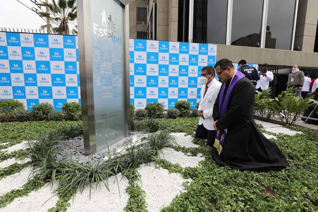 ERP. En una emotiva ceremonia, el Seguro Social de Salud (EsSalud) develó un tótem en memoria del personal de salud que perdió la batalla contra el Covid-19 salvando vidas de pacientes infectados con el mortal virus, el cual se ubica en el frontis del complejo Arenales, en Jesús María.