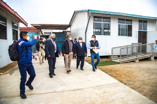 En la mañana, en compañía del gerente regional de Educación, Oster Paredes, Serna visitó la institución educativa Santa María, del distrito trujillano de La Esperanza, que alberga a más de dos mil alumnos de primaria y secundaria, y supervisó las clases presenciales y el avance del proyecto para la ejecución de una nueva infraestructura.