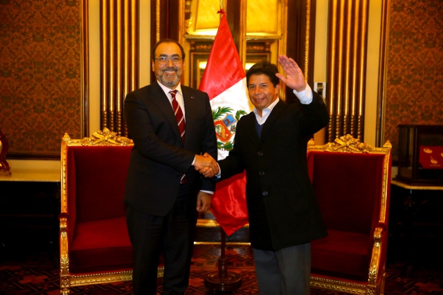 ERP. El presidente de la República, Pedro Castillo Terrones, sostuvo hoy un encuentro con el titular del Banco de Desarrollo de América Latina (CAF), Sergio Díaz Granados en Palacio de Gobierno.