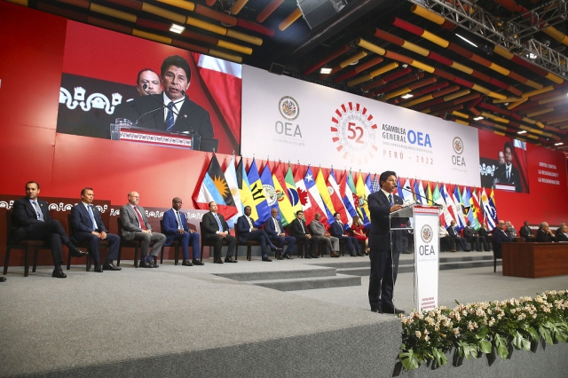ERP. El presidente de la República, Pedro Castillo Terrones, inauguró hoy la 52° Asamblea General de la Organización de los Estados Americanos (OEA) y llamó a los países miembros a reafirmar compromisos por lograr la igualdad de oportunidades para todos y la vigencia plena de los derechos humanos, así como trabajar en unidad para encarar las urgencias y demandas de la región.