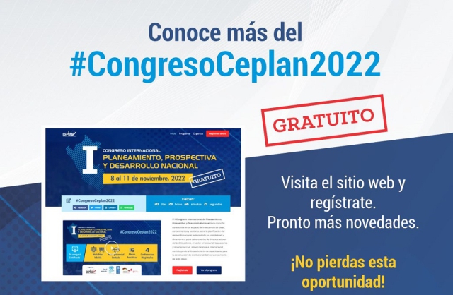Para registrarte y participar en el “I Congreso Internacional de Planeamiento, Prospectiva y Desarrollo Nacional”, ingresa al siguiente link: https://congreso.ceplan.gob.pe/