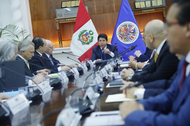 ERP. El presidente de la República Pedro Castillo Terrones y otros ministros, se reunieron con el grupo de Alto Nivel de la Organización de Estados Americanos, que levantará información en el país, respecto a un pretendido golpe de Estado institucional. La presencia de esta misión fue solicitada por el Poder Ejecutivo, ante la amenaza de afectarse la continuidad del mandato presidencial.