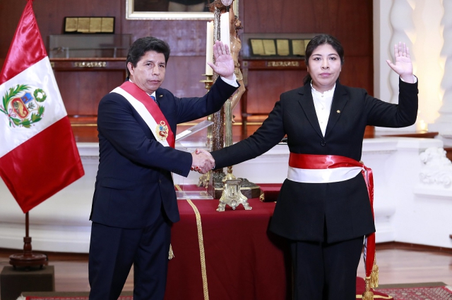 ERP. Después de la crisis de gabinete consecuencia del rehusamiento de la "Cuestión de confianza" por parte del Congreso de la República, la abogada y parlamentaria Betssy Betsabé Chávez Chino fue nominada como nueva presidenta del Consejo de Ministros, en reemplazo del Dr. Aníbal Torres Vásquez. La ceremonia de juramentación estuvo a cargo del mandatario Pedro Castillo Terrones.