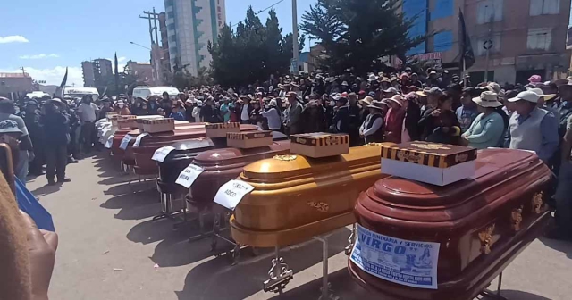 ERP. El Perú se desangra y la población sepulta a las personas asesinadas por un política represiva cruel e inmisirecorde del gobierno de Dina Boluarte. En la región Puno, se concentraron para dar cristiana sepultura a las 17 personas que cayeron bajo el impacto de las balas; en tanto que en Cusco y Tacna, el descontento se expresó mediante movilizaciones y también actos vandálicos.