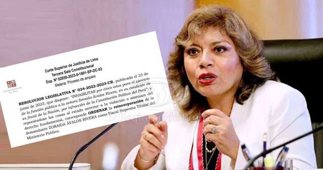 ERP. El Poder Judicial ordenó este martes la reincorporación de Zoraida Ávalos a la Junta de Fiscales Supremos, luego de que la fiscal suprema interpusiera un recurso ante el Poder Judicial porque el Congreso la inhabilitó de la función pública por 5 años, tras acusarla de suspender en enero de 2022 las investigaciones contra el entonces presidente Pedro Castillo.