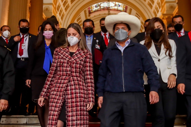 ERP. El jefe del Estado, Pedro Castillo, se reunió hoy con la presidenta del Congreso de la República, María del Carmen Alva, y los tres vicepresidentes que integran la Mesa Directiva del Parlamento. Al final de la reunión la presidente del Congreso, tuvo un gesto imperinente, que fue duramente criticado en las redes sociales, por descortés y una demostración del racismo que subsiste en el país.