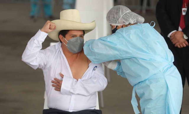 Pedro Castillo recibió la primera dosis de vacuna contra la COVID-19 de Sinopharm en Vacunatón
