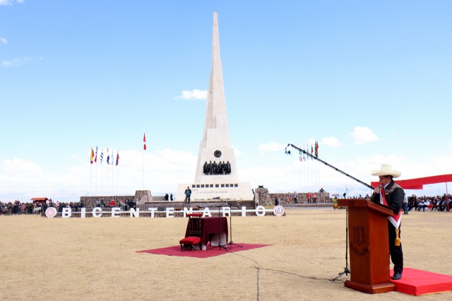 ERP. El presidente de la República, Pedro Castillo, juró hoy de manera simbólica al cargo, en una ceremonia realizada en la histórica Pampa de la Quinua, en Ayacucho, donde se selló la independencia del Perú y de América del Sur, en presencia de los mandatarios de Argentina, Bolivia y Chile y de autoridades y pobladores de esta región de la sierra sur del país.