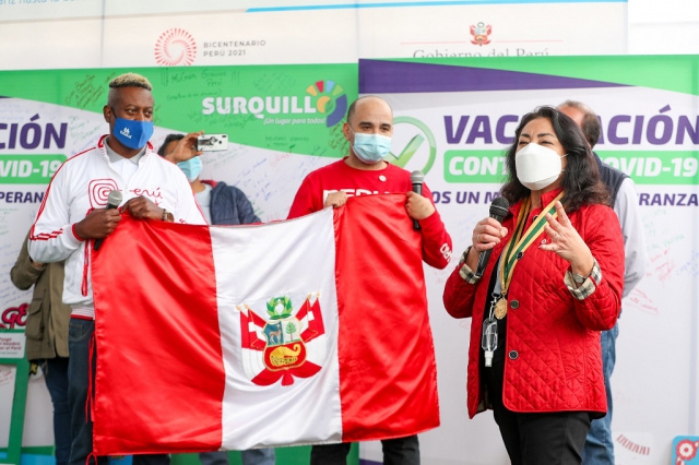 ERP. En reconocimiento a su liderazgo y trabajo coordinado con las distintas instancias del gobierno en las graves circunstancias de la pandemia, así como por su labor en la gestión y organización del proceso de vacunación, la presidenta del Consejo de Ministros, Violeta Bermúdez, recibió hoy la Medalla Cívica de la Municipalidad de Surquillo.