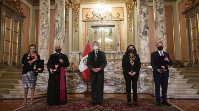 ERP. El Gobierno de Transición y Emergencia reconoció esta tarde con la “Medalla al Mérito” a tres organizaciones por el trabajo coordinado con el Estado peruano en la respuesta nacional frente a la pandemia de la COVID-19, en un acto celebrado en Palacio de Gobierno. Se trata de Soluciones Empresariales Contra la Pobreza-SEP, la Sociedad Nacional de Minería, Petróleo y Energía–SNMPE y el Colectivo "Respira Perú".