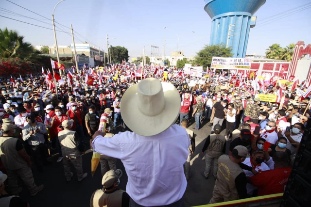 ERP. El candidato presidencial de Perú Libre, donde Pedro Castillo Terrones sabe que cualquier desconcentración podría ser perjudicial en sus aspiraciones de llegar a la primera magistratura del Estado peruano y no cesa en su recorrido por todo el país. Este viernes fue recibido en el departamento de Ica, donde una multitud escuchó su mensaje de esperanza y de cambio.