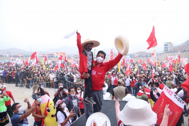 ERP. El candidato presidencial Pedro Castillo Terrones de Perú Libre, continuó su campaña en la capital de la República, donde fustigó el aprovechamiento que se hace de los recursos del Estado e hizo un llamado a partidos políticos y sociedad civil unirse en bien del país; a la masa, le pidió no caer en las provocaciones. Manchay primero y San Juan de Lurigancho, mantuvieron la misma expectativa de jornadas anteriores.