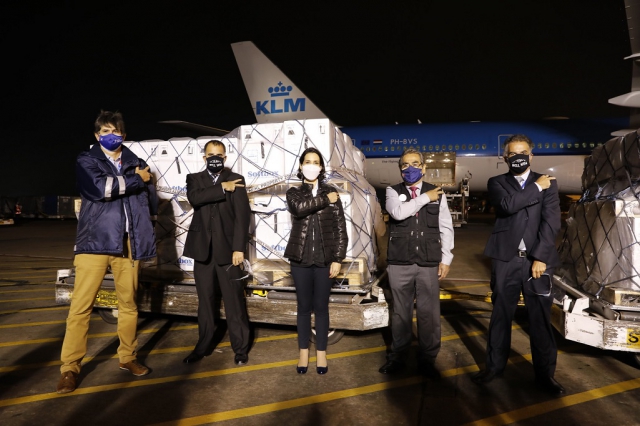ERP..Se sigue incrementando el número de dosis de las vacunas contra la COVID-19 que vienen llegando al Perú. Esta noche arribó al aeropuerto internacional “Jorge Chávez” un nuevo lote de 700,000 dosis de dichos inmunizantes producidos por el laboratorio Pfizer, con lo cual se fortalece el proceso de vacunación que se encuentra en marcha en todo el territorio nacional.