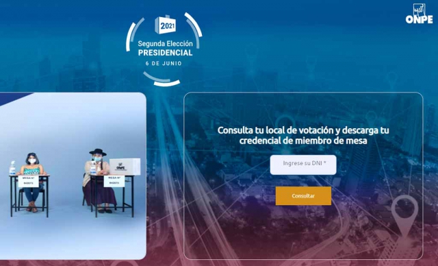 ERP. Con miras a la Segunda Elección Presidencial del próximo 6 de junio, la Oficina Nacional de Procesos Electorales (ONPE) habilitó un link en su página web para que los electores consulten su local de votación y, de ser miembro de mesa, descarguen su respectiva credencial. Hacer Click para ir a página