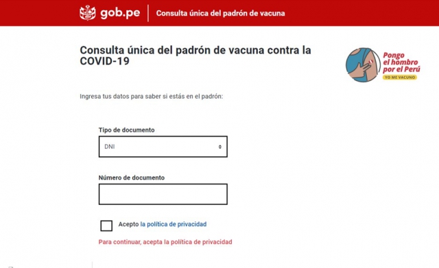 ERP. Mayor transparencia para inmunización de adultos mayores del país que serán vacunados de acuerdo a prioridad. El Gobierno, a través del Ministerio de Salud, habilitó la plataforma del Padrón Único Nacional de Vacunación en el marco de la nueva estrategia para inmunizar contra la covid-19 a toda la población, empezando por los adultos mayores, tengan o no un seguro de salud.