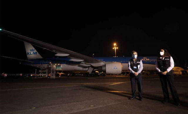 ERP. El vuelo de KLM 743 con 50.000 dosis de vacunas contra el coronavirus del laboratorio Pfizer aterrizó en suelo peruano este miércoles 3 de marzo. En los próximos minutos será trasladado al almacén de Cenares bajo el resguardo de la Policía Nacional y las Fuerzas Armadas.