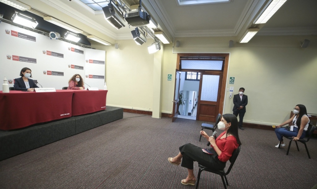 ERP. En conferencia de prensa realizada en la sede de la Presidencia del Consejo de Ministros, las ministras de Comercio Exterior y Turismo - Mincetur, Claudia Cornejo, y la ministra de Desarrollo e Inclusión Social - Midis, Silvana Vargas, dieron a conocer el balance de las últimas acciones desarrolladas por el Ejecutivo, en el marco de la lucha contra la pandemia.