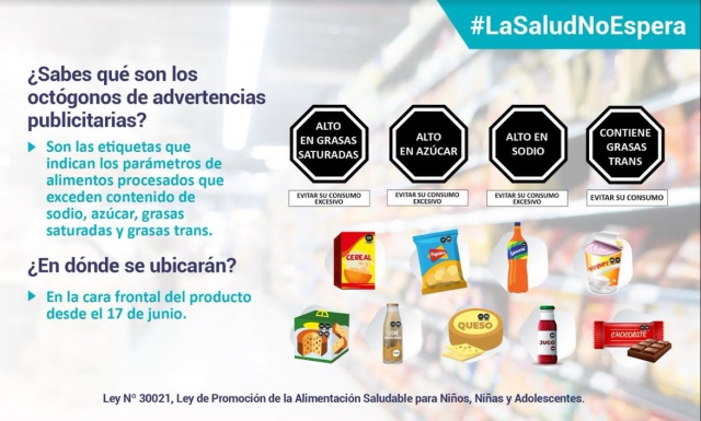 ERP. La Asociación de Exportadores (ADEX) pide al Ministerio de Salud (Minsa) postergar un año más el inicio de la segunda fase sobre el uso de adhesivos con las advertencias publicitarias en los envases (octógonos), etiquetas y cajas de alimentos y bebidas procesadas, de acuerdo al Manual de Advertencias Publicitarias de la Ley de Promoción de Alimentación Saludable para Niños, Niñas y Adolescentes.