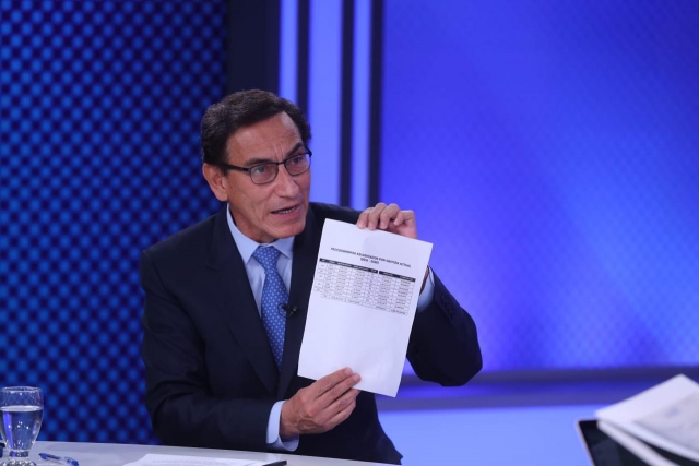 ERP. El presidente de la República, Martín Vizcarra, indicó que en este momento no es conveniente una vacancia presidencial, por lo que dijo confiar que los congresistas de la República tomarán una decisión pensando en el país, ya que es necesario seguir trabajando unidos para fortalecer los servicios de salud y educación en beneficio de todos los peruanos. En tanto realiza jornada de trabajo en Junín en Congreso se debate su vacancia.