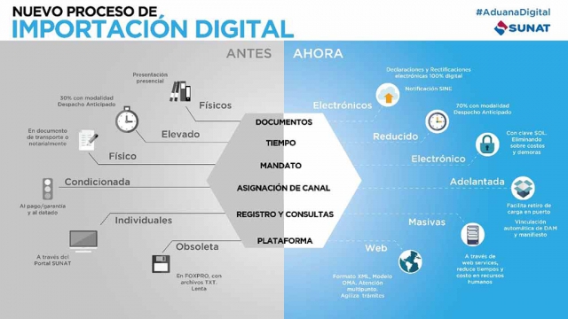 ERP. La Superintendencia Nacional de Aduanas y de Administración Tributaria (SUNAT) implementó la plataforma de importación digital basada en el uso de formatos electrónicos, que prescinde de los documentos físicos y trámites presenciales, permitiendo que 34,000 empresas importadoras registradas a nivel nacional reduzcan sus costos y tiempo en sus trámites de importación.