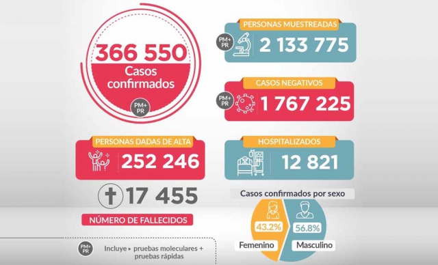 A 17,455 se elevó el número de fallecidos por covid-19 en el Perú y 366,550 casos positivos
