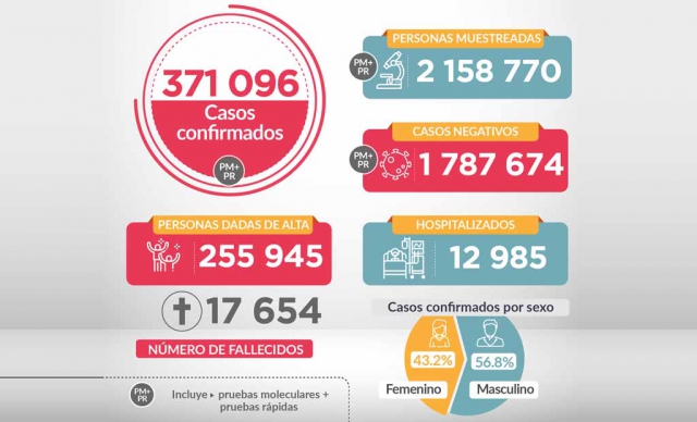 A 17,654 se elevó el número de fallecidos por covid-19 en el Perú y 371,096 casos positivos