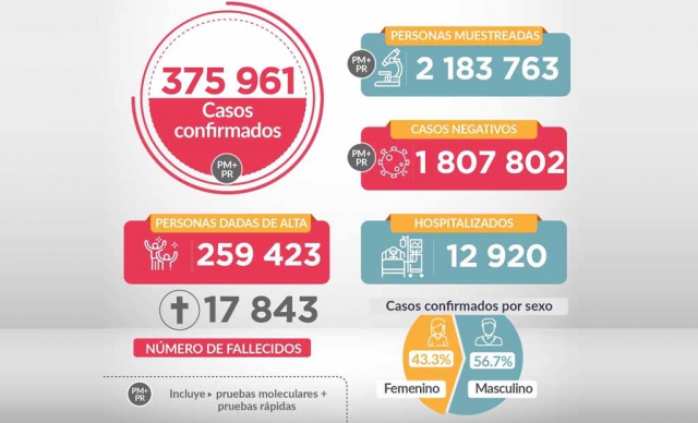 A 17,843 se elevó el número de fallecidos por covid-19 en el Perú y 375,961 casos positivos