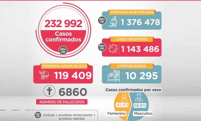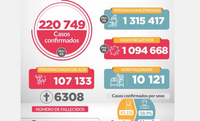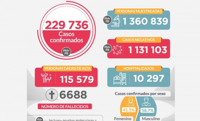 - A 5,903 se elevó el número de fallecidos por covid-19 en el Perú y 208,823 casos positivos
