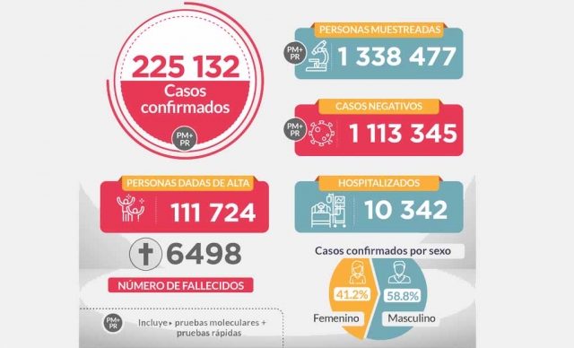 A 6,498 se elevó el número de fallecidos por covid-19 en el Perú y 225,132 casos positivos