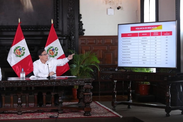 ERP. El presidente de la República Martín Vizcarra Cornejo, inició el primer día de la extensión de la cuarentena reuniéndose con miembros del gabinete ministerial y posteriormente brindó declaraciones a los medios de comunicación. Después de hacer una evaluación de las nuevas regulaciones solicitó una nueva convivencia que implica cambio en los hábitos personales; asimismo recordó que el transporte interprovincial no está permitido.