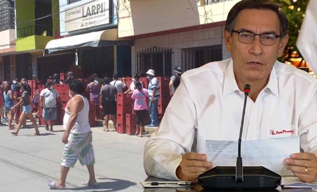 ERP. El presidente de la República, Martín Vizcarra, durante la conferencia brindada esta tarde, no pudo evitar mostrar su rechazo frente a las largas colas que se formaron en los exteriores de una tienda para comprar cajas de cerveza en el distrito de Castilla, Piura.