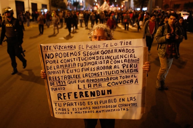 ERP. Población peruana salió a las calles para buscar una solución a la crisis política que enfrenta a Ejecutivo y Legislativo. La marcha denominada “Que se vayan todos”, en respaldo al proyecto para el adelanto de elecciones generales, se desarrolló anoche desde la plaza San Martín y por diversas calles de Lima, con la participación de organizaciones sociales, estudiantiles, políticas y de mujeres, entre otras.