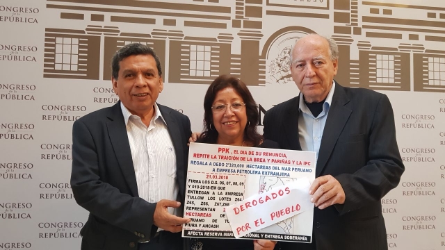 ERP. La lucha de los pescadores del norte, dio finalmente sus frutos. Tras la derogación de los cinco decretos supremos que autorizaban la exploración y explotación petrolera de Tumbes a Ancash, publicada ayer en el diario oficial El Peruano, se ha dado un paso muy importante en la defensa de los derechos de los pescadores y la seguridad alimentaria del país, señaló el Congresista Hernando Cevallos en conferencia de prensa.
